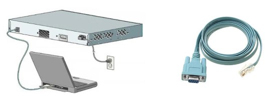 Untuk mengkonfigurasi switch, langkah pertama yang perlu dilakukan adalah membangun sesi console. Sesi console dibentuk dengan menghubungkan port console yang ada pada switch dengan port COM 1 atau USB yang ada pada PC.