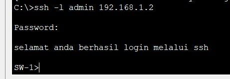 SW-1(config)#banner motd "selamat anda berhasil login melalui ssh"