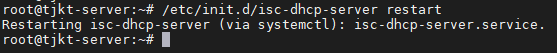/etc/init.d/isc-dhcp-server restart #atau dengan perintah
