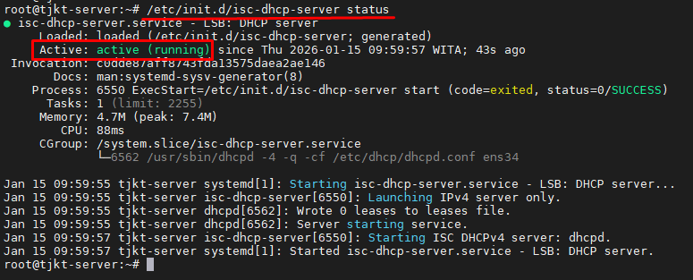 /etc/init.d/isc-dhcp-server status #atau dengan perintah