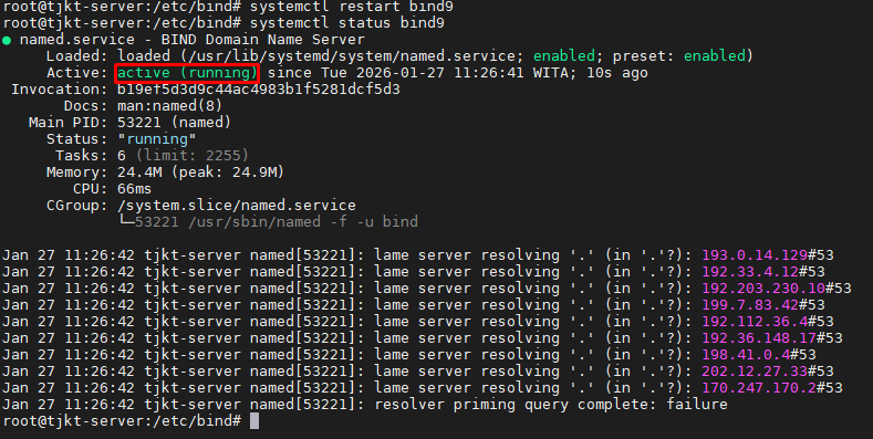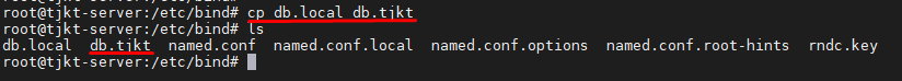 Kemudian ubah file db.local tersebut menjadi db.tjkt sesuai dengan konfigurasi yang telah di buat pada file named.conf.local