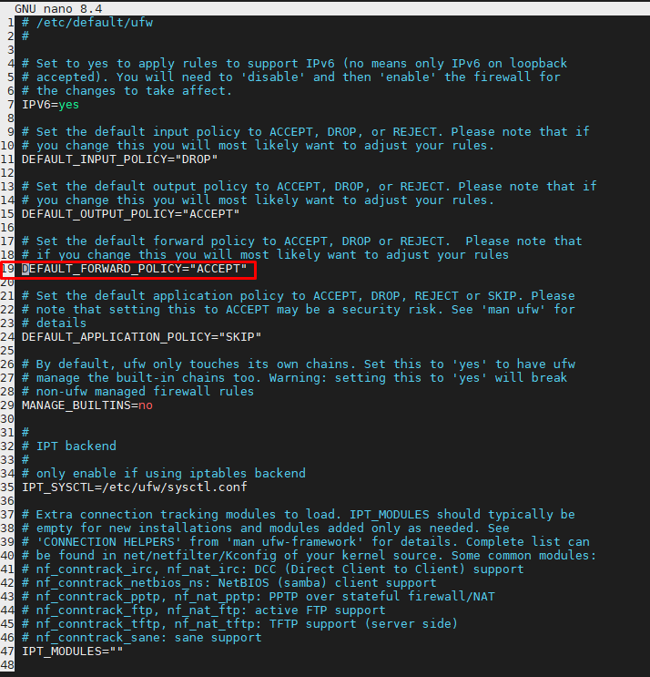 DEFAULT_FORWARD_POLICY="ACCEPT"