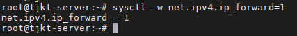 kemudian isikan net.ipv4.ip_forward=1 hingga hasilnya seperti berikut ini