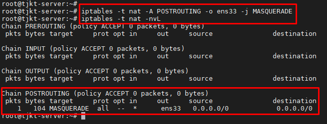 iptables -t nat -A POSTROUTING -o ens33 -j MASQUERADE