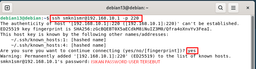 Perintah untuk remote ssh dengan menggunakan port tertentu, misal port 220