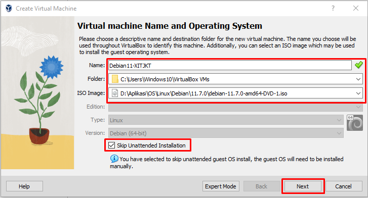 Pastikan berikan centang pada Skip Unattended Installation