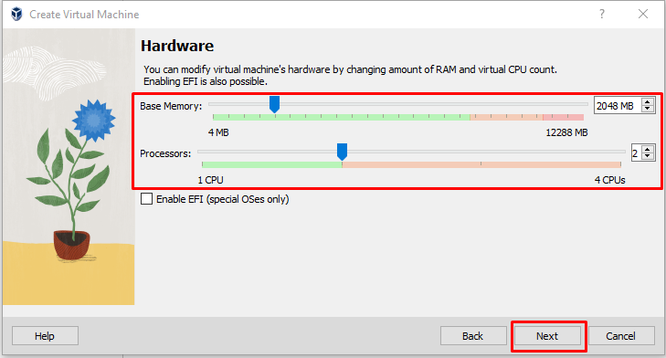 Setup Virtual Machine Anda seperti berikut