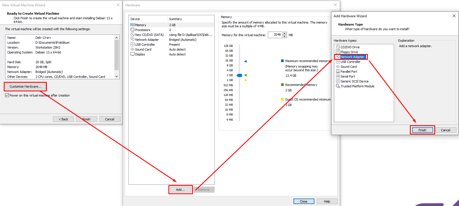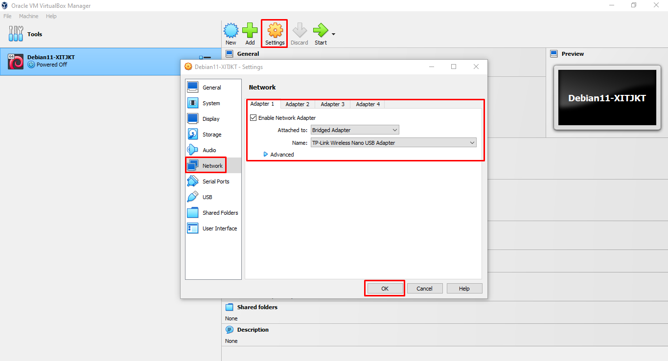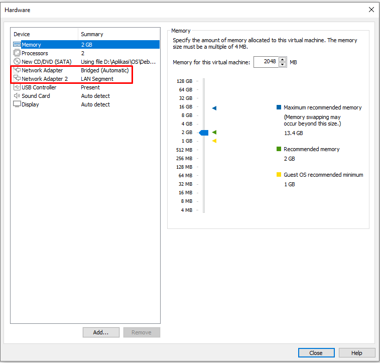- Tambahkan 1 Network Adapter
