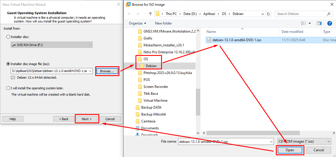 ISO Image : arahkan ke folder file ISO yang telah kalian download