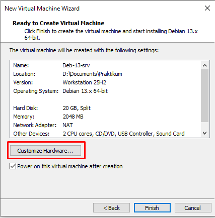 Buat 1 virtual machine lagi menggunakan vmware dengan ketentuan