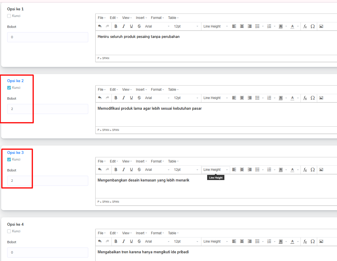 - Pilih Multi Jawaban – Multi Bobot – 4 Opsi