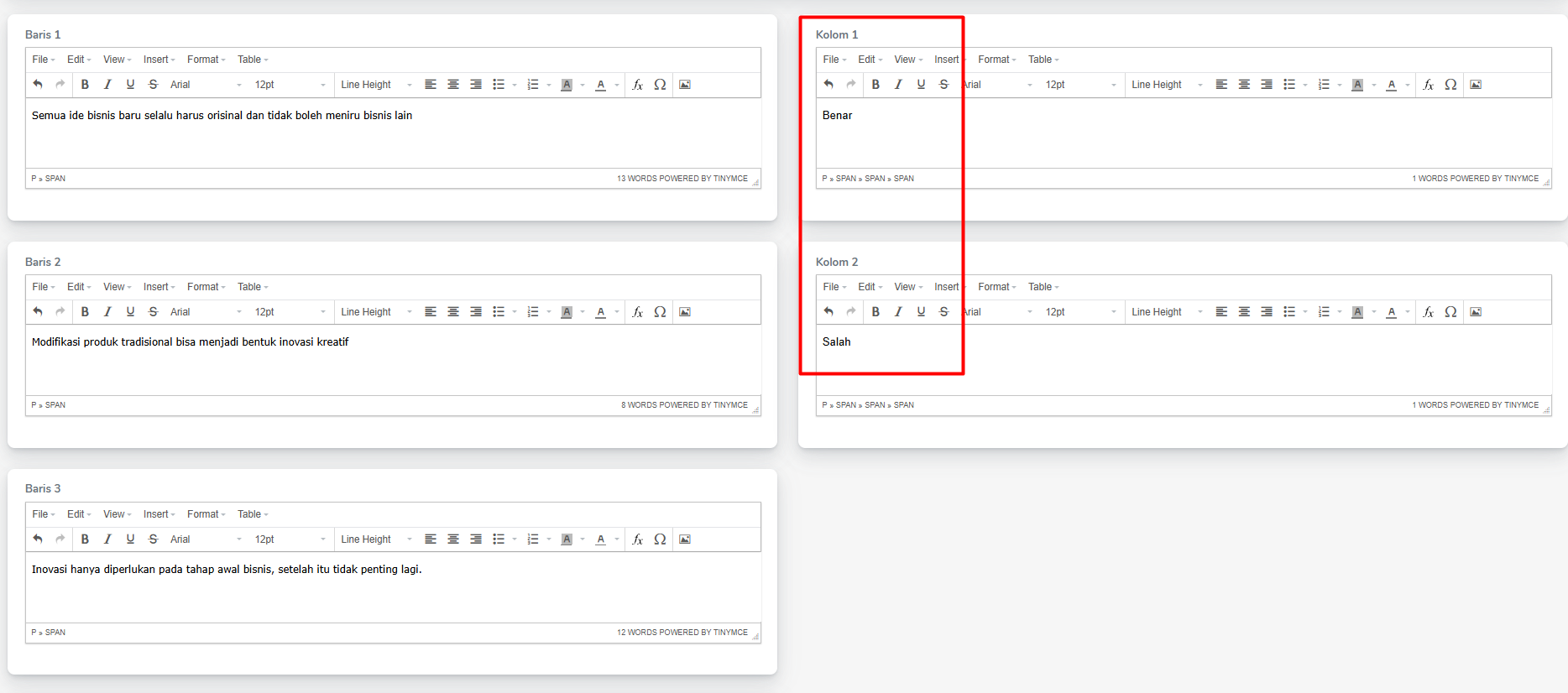 - Pilih minimal 2 (boleh lebih) dan berikan bobot di jawaban yang benar (maksimal total bobot adalah 4 untuk 1 soal)